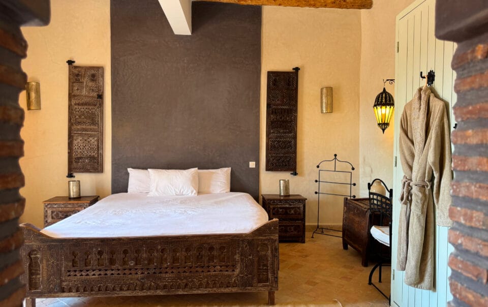 Spacieuse et lumineuse, cette chambre marie charme marocain et confort moderne. Idéale pour un couple avec un enfant ou un ami, elle offre un espace convivial avec un lit double et un lit d’appoint, une salle de bain traditionnelle et une vue apaisante sur le patio. Parfaite pour se ressourcer après une journée d’exploration.